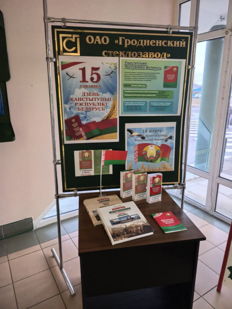 В экспозиции было представлено патриотическое издание «Беларусь непераможная!» — книга, которая вдохновляет и укрепляет веру в силу духа нашего народа. Каждый сотрудник мог взять памятный буклет с информацией о значении Конституции и государственной символике.